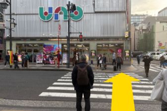 パチンコ屋UNOの横断歩道を渡ります。